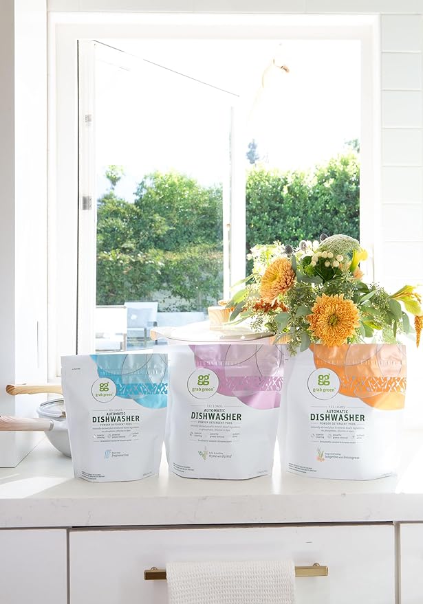 Grab Green Automatic Dishwashing Detergent Pods, 24 Count, Fragrance Free, Plant and Mineral Based, Superior Cleaning, Powerful Grease Removal, Brilliant Shine, Packaging May Vary