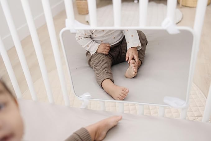 • Easy to Attach: This crib mirror for baby is easy to attach to any crib using the included velcro straps. It's the perfect baby mirror for crib or bassinet to keep your baby entertained.