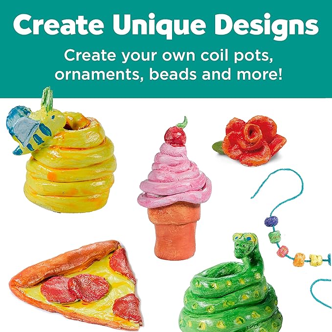 • CREATE AND PAINT - Bring your hand sculpted clay creations to life with 6 colors of opaque acrylic paint! Add vibrant colors to your clay beads, pinch pots, clay figurines and more! Paint colors included: red, yellow, black, blue, orange, and white