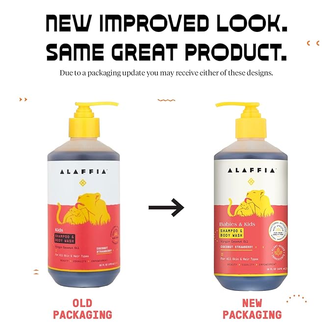 • KIDS SHAMPOO & BODY WASH. Alaffia’s playful coconut strawberry shampoo & body wash, prepared with Ethically Traded virgin coconut oil, strawberry and hibiscus, nourishes and softens hair and skin. Gentle and non-irritating for EveryDay clean fun.