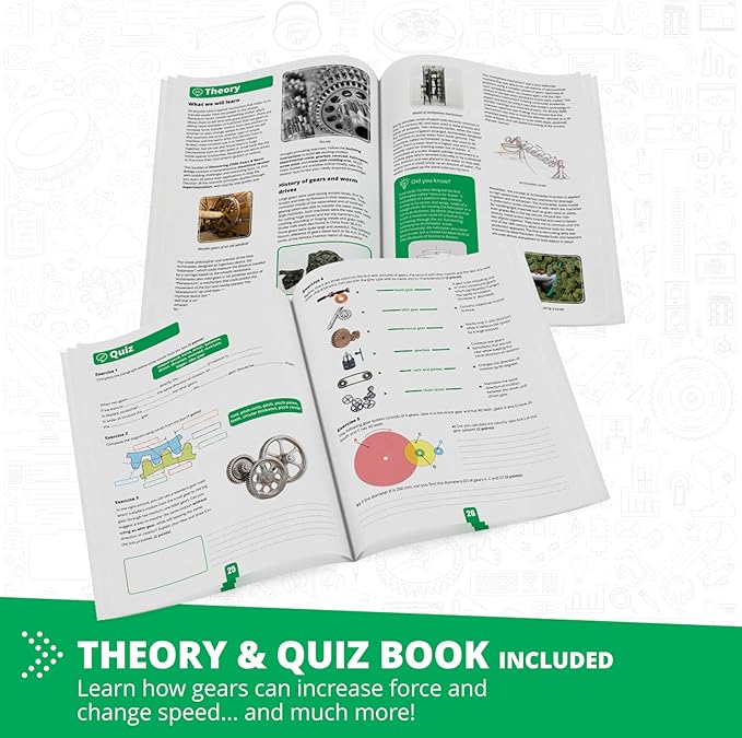 • KIDS LEARN how gears can reduce or increase speed and learn how worm drives are used to change rotational speed. Build 12 working models such as an experimental crane, a helicopter, a gearbox and more.