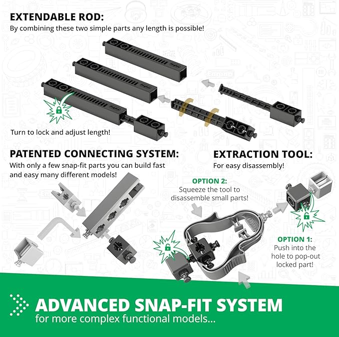 Engino- STEM Toys, Mechanics Gears & Worm Drives, BuildingToys for Kids 9+, Engineering Kit, Educational Set, Gifts for Boys & Girls, STEM Projects, Fun Activities for Kids (12 Model Options)