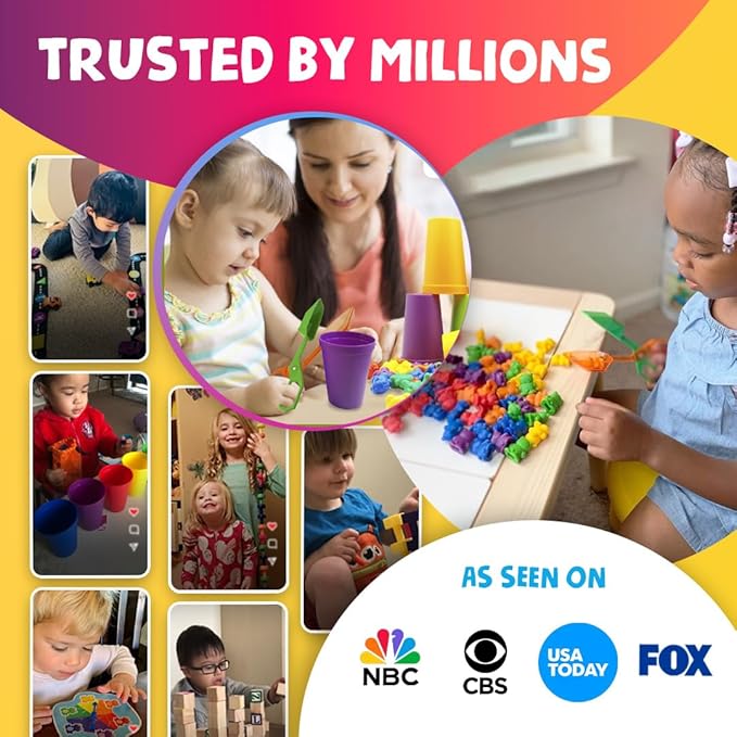 • Rainbow Bear Bliss: Designed to motivate and stimulate young minds, these color sorting toys for toddlers 1-3 can also serve as toddler sensory toys. Independently Third-Party Lab Tested, they are made of durable, non-toxic, BPA-free plastic, ensuring safety while learning.