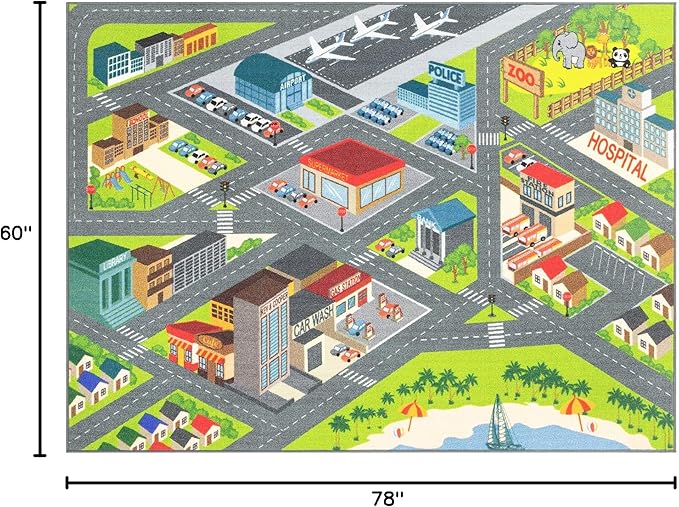• TAKE YOUR IMAGINATION FOR A RIDE: Designed for interactive fun, this updated take on the classic play rug lets kids drive their toys through a vibrant city layout. Perfect for solo play or sharing with friends.