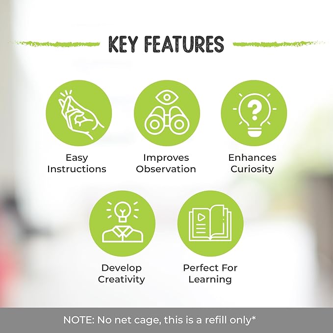 • Easy & User Friendly: The included rearing supplies make this kit simple to use. Your caterpillars for butterflies kit refill includes food, mister, butterfly feeder, sugar, eye dropper, easy instructions, and a life cycle coloring page.