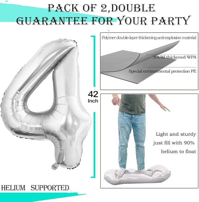 • Package Includes:Number 4 Balloons*3,42 inch,32 inch,16inch each,Straw*1