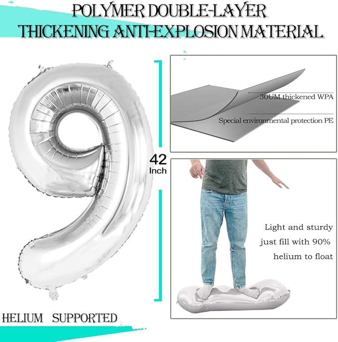 • Package Includes:Number 9 Balloons*3,42 inch,32 inch,16inch each,Straw*1