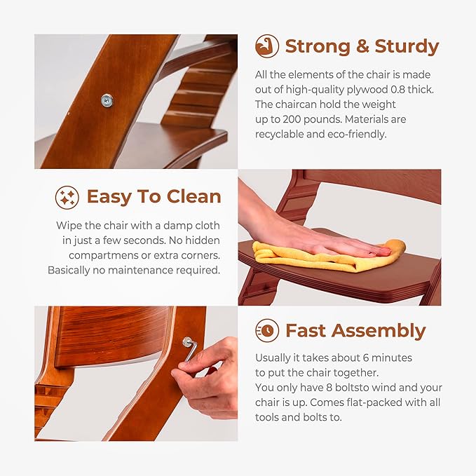 • 🧽 STRESS-FREE CLEANUP: Designed for real life with kids. The smooth, lacquered surfaces wipe clean in seconds. No fabric crevices to trap food, no complicated parts to disassemble. More time enjoying meals, less time cleaning up after them.