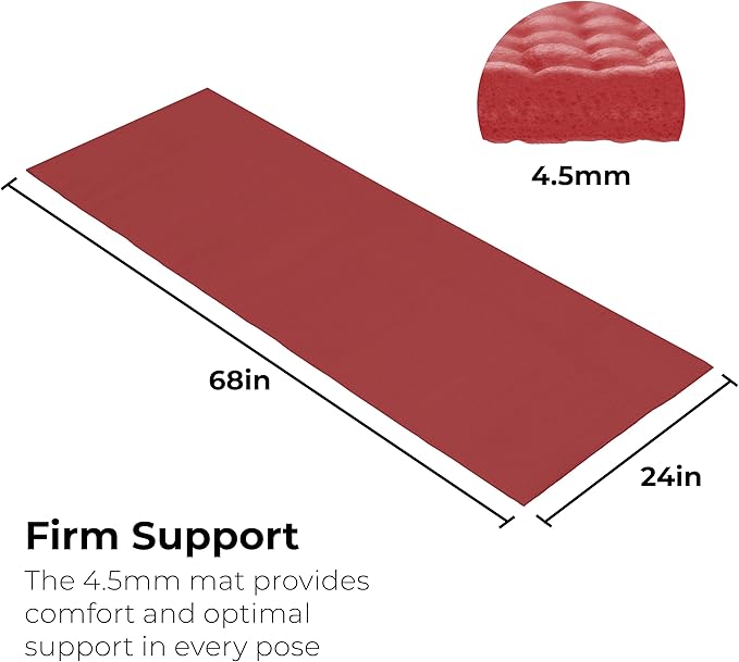 • Non-Toxic: These yoga mats are produced without latex, lead, heavy metals, and 6P phthalates, so you can feel good whenever you work out; each mat measures 68 inches long and 24 inches wide