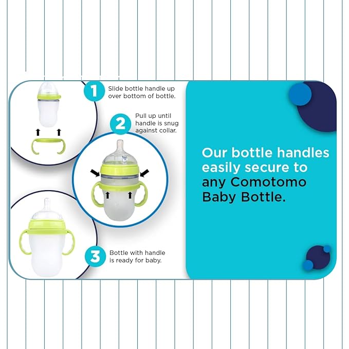 • AMAZING GRIP : The premium handles we offer are not only easy to attach to your Comotomo Baby Bottle but also stay securely in place. Their anti-slip design ensures that they are perfect for your baby's tiny hands.