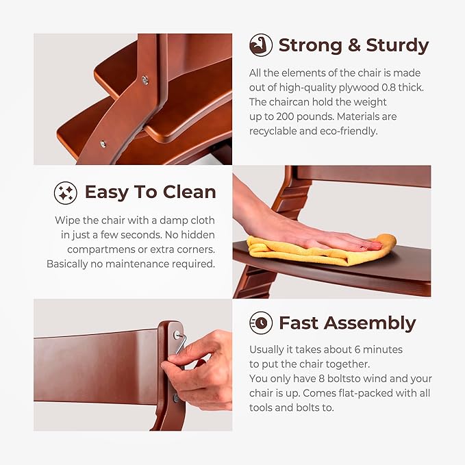 • ✔️ A ONE-TIME INVESTMENT IN QUALITY: Forget plastic chairs that last a single phase. The Fornel is crafted from solid wood and grows with your child, safely supporting them from their toddler years all the way up to 200 lbs. It's not just a high chair; it's a future heirloom.
