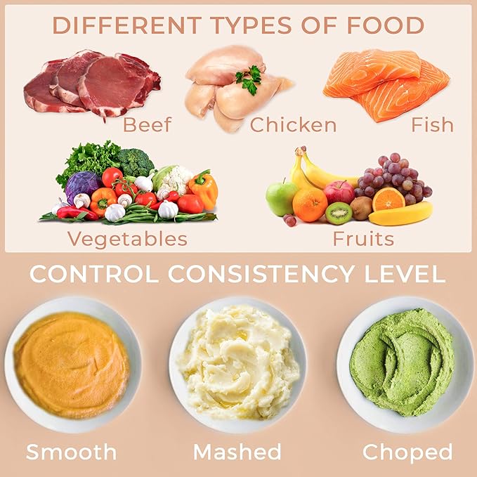 • EASY TO USE Intuitive Touch Control Panel Interface is All You Need to Prepare Healthy and Safe Food for Your Baby - Simply Press One Button to Steam the Food and Then Press Another Button to Chop it. Baby Food Maker Does All That With Ease