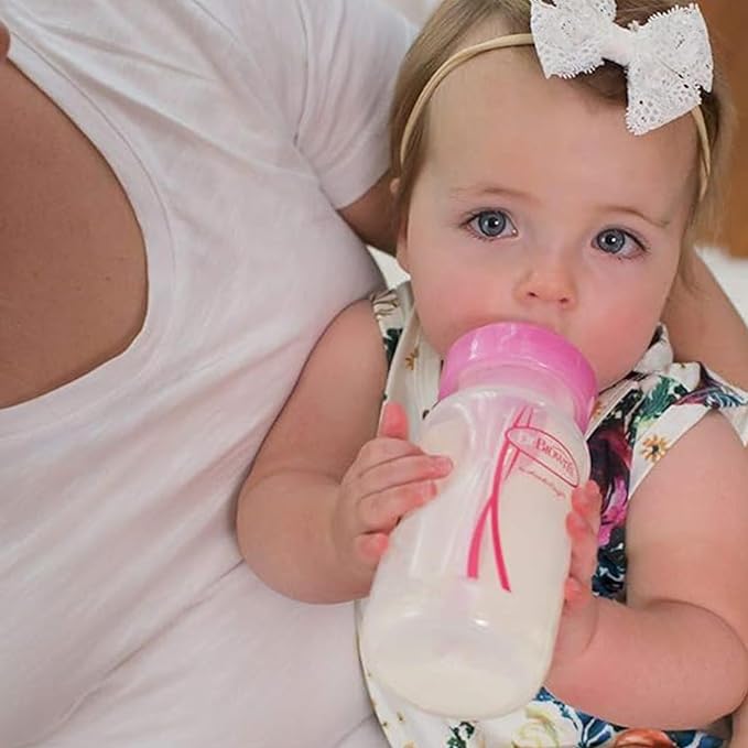Dr. Brown's Natural Flow Anti-Colic Options+ Wide-Neck Baby Bottles 5 oz/150 mL,with Level 1 Slow Flow Nipple, Pink 4 Pack, 0m+