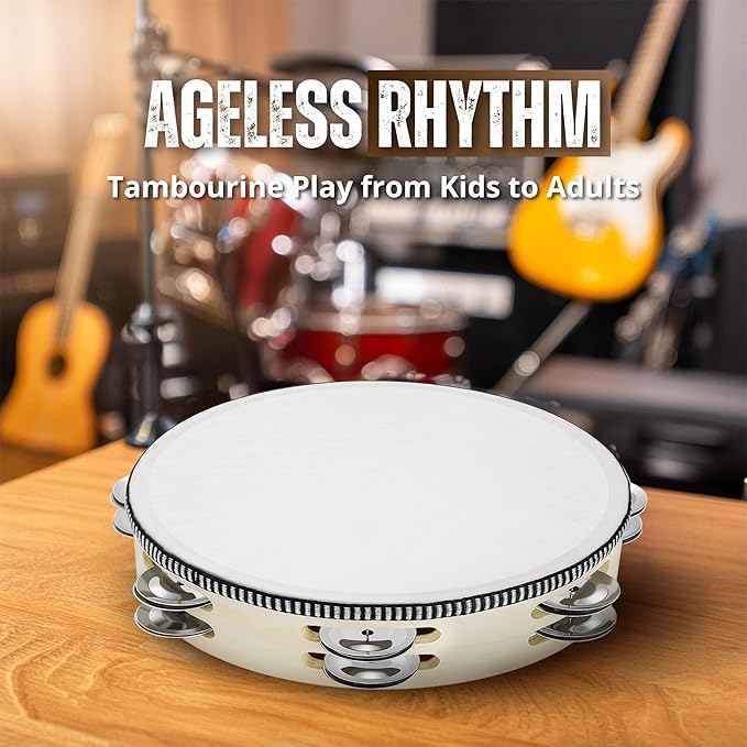 • Unmatched Quality: Crafted from high-quality wood and sturdy drum skin, this tambourine holds up to repeated use, making this tambourines musical instrument adult necessary for any musician or anyone fronting a band