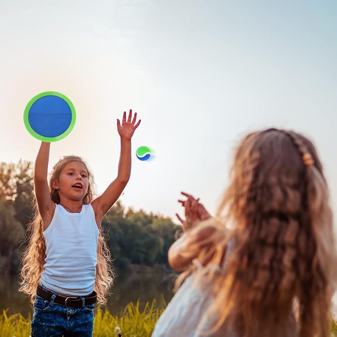 EVERICH Upgraded Toss and Catch Ball Game Set - Indoor and Outdoor Games for Kids 3-12, Beach Sand Pool Water Toy Includes 4 Paddles 4 Sticky Balls, Great Birthday Easter Gifts for Boys Girls