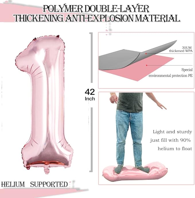 • Package Includes:Package Includes:Rose Gold number 1 and number 6 foil balloon,1 inflatable straw,315 inch ribbon,NO HELIUM COME WITH THESE BALLOONS