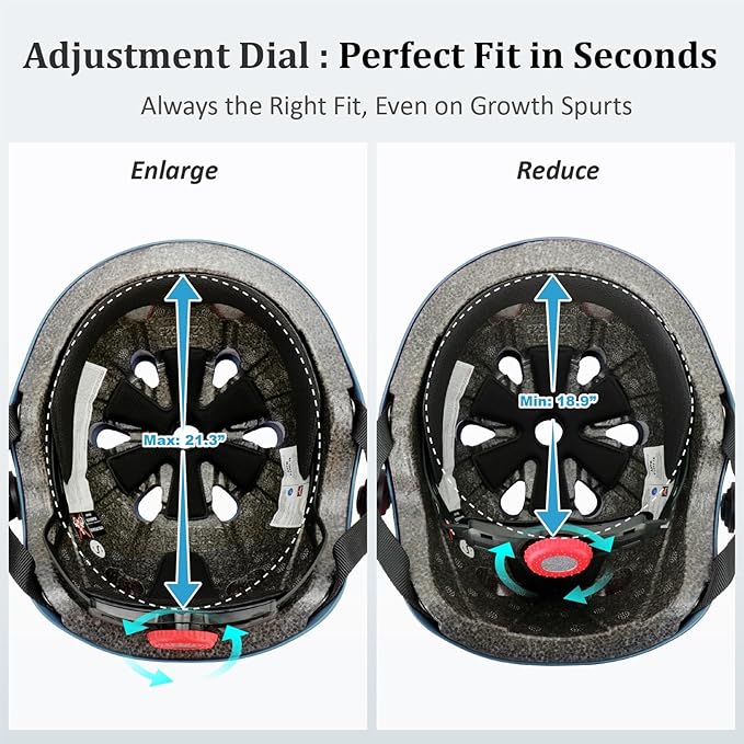 • 【Adjustable Kids Toddler Helmet Set 】- The helmet for kids has an adjustable knob in the back, can easily adjust to a perfect fit for kids, Helmet head circumference: 48-54 cm/18.9"-21.3", suitable for toddlers aged 3-5 and kids aged 5-8, one bike helmet set can be used for a few years