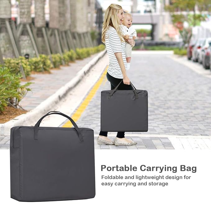 • Portable and Foldable Design: No need to assemble, our travel crib is ready to go out of the box. And you can quickly fold it in the carrying bag without any extra tools. The compact design and light weight allow you to put it in the trunk of your car and bring it to trains and planes as you travel.