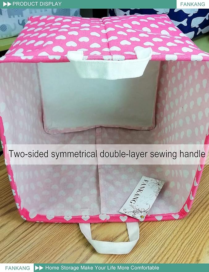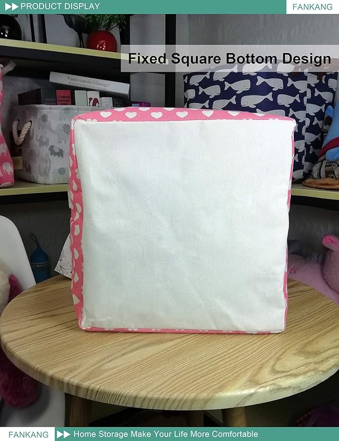 FANKANG Square Nursery Hamper Storage Bins Canvas Laundry Basket Foldable with Waterproof PE Coating Storage Baskets Gift Baskets for Children, Office, Bedroom, Clothes(Square-Pink Heart )