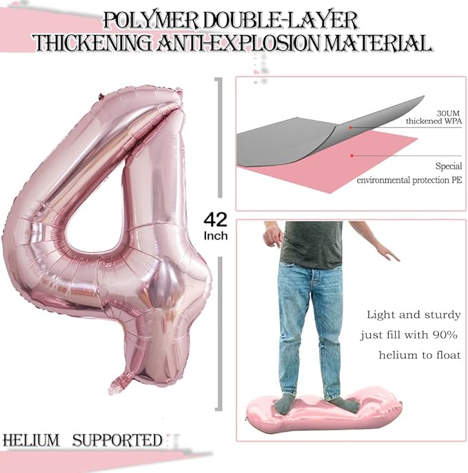 • 2 pcs Number 4 Balloons in Package,Double Guarantee for the 4th Birthday Party or 44th Birthday Party