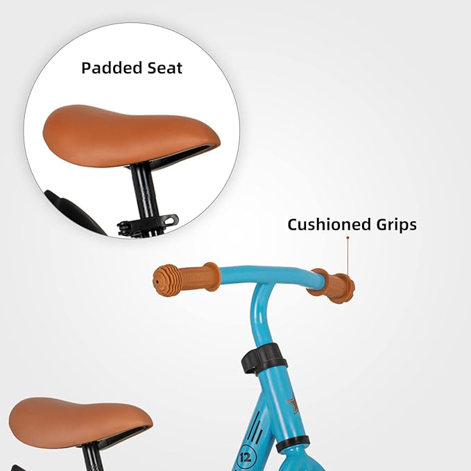• ADJUSTABLE SEAT & HANDLEBAR- Built with a quick release seat for easy adjustment, suitable for kids 2 -5 years. The seat is 12.6"- 18.5" ( 32-47cm) adjustable. The handlebar is 20.4' - 22.4"( 52cm - 57cm) adjustable.