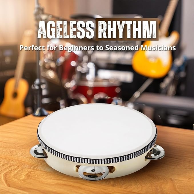 • Unmatched Quality: Crafted from high-quality wood and sturdy drum skin, this tambourine holds up to repeated use, making this tambourines musical instrument adult necessary for any musician or anyone fronting a band