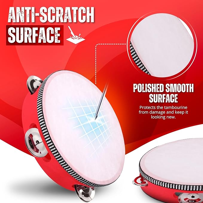 • Elevate your Music: Our tambourines for adults and kids have 8 pairs of single-row metal jingles that produce a crisp, clear sound; the tambourine is one of the musical instruments that adds depth and complexity to your music