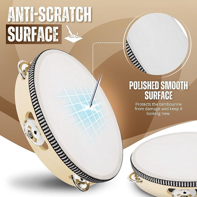 • Unmatched Quality: Crafted from high-quality wood and sturdy drum skin, this tambourine holds up to repeated use, making this tambourines musical instrument adult necessary for any musician or anyone fronting a band