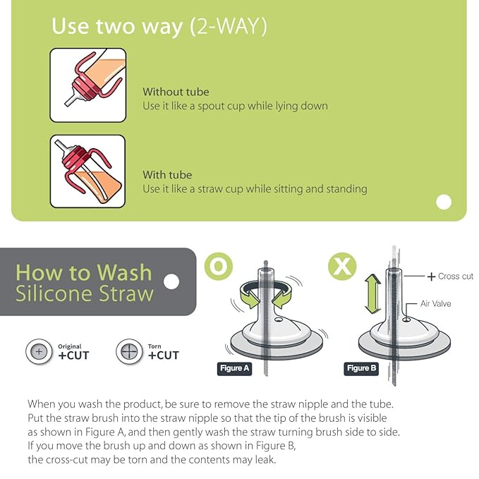 • USE 2-WAY : Without tube you can use it like a spout cup while lying down. With tube you can use it like a straw cup while sitting or standing