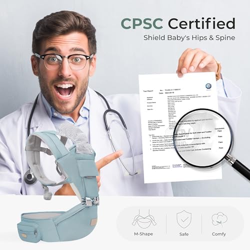 FRUITEAM 6-in-1 Baby Carrier with Waist Stool/Hip Seat for Breastfeeding, One Size Fits All - Adapt to Newborn, Infant & Toddler (Blue)