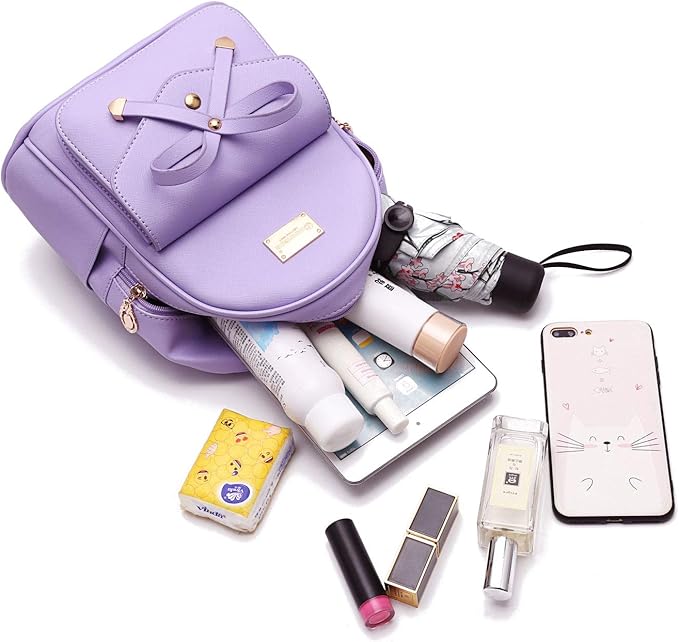 • Cute Backpack for Teen Girls: it's a great gift for also girls and women. Mini size and bowknot decor make you look chic and fashion.