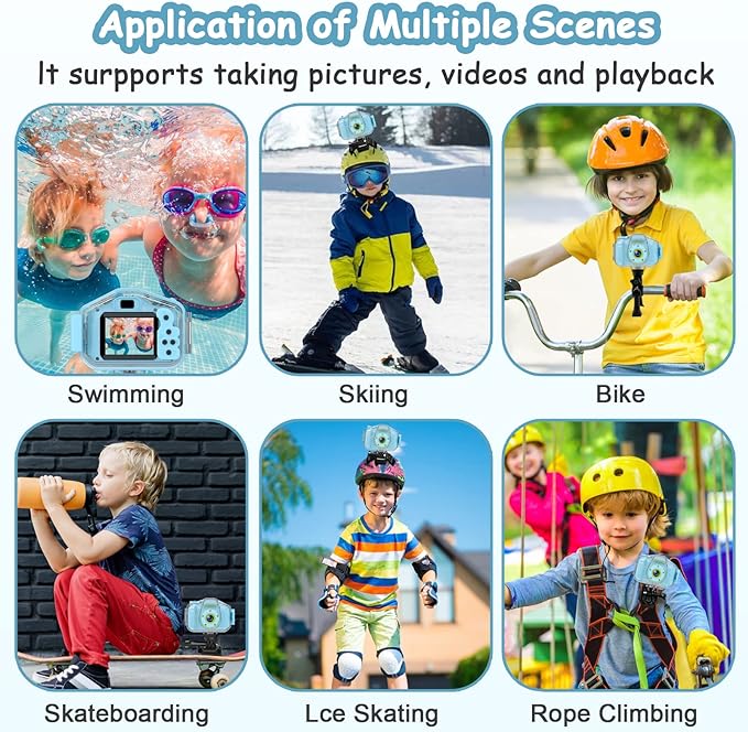 • Kids Waterproof Camera: This underwater case can provide excellent protection for camera from scratches and hit. Agoigo kids camera with the case installed, you can dive underwater up to 98ft. Perfect for swimming, surfing, diving. Important tips: Do does not open the waterproof case underwater