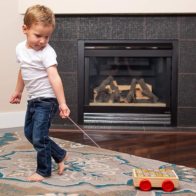 Building Blocks for Toddlers 1-3 Years Old, 30 Large Stackable Wooden Baby Blocks with Alphabet and Number Icons on Every Side, Toy Wagon Included