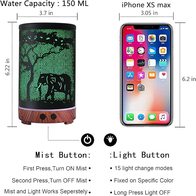 • 【Safety Design & Auto Shut Off 】 Aromatherapy Essential Oil Diffuser will automatically stop working and keep your unit from being damaged as soon as its water content has been used up.Easy to set up and all the functions are simple to operate, even a child could figure it out.the aroma oil diffuser’s cover can be effortlessly removed, easy to fill with water and a few drops of essential oil, helping you readily reap aromatherapy benefits.