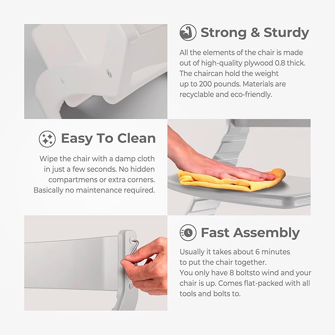 • The toddlers chair has a very solid construction, with stable legs which makes it difficult to topple over; All Materials are FSC and CARBS certified, EPA TSCA Title VI compliant