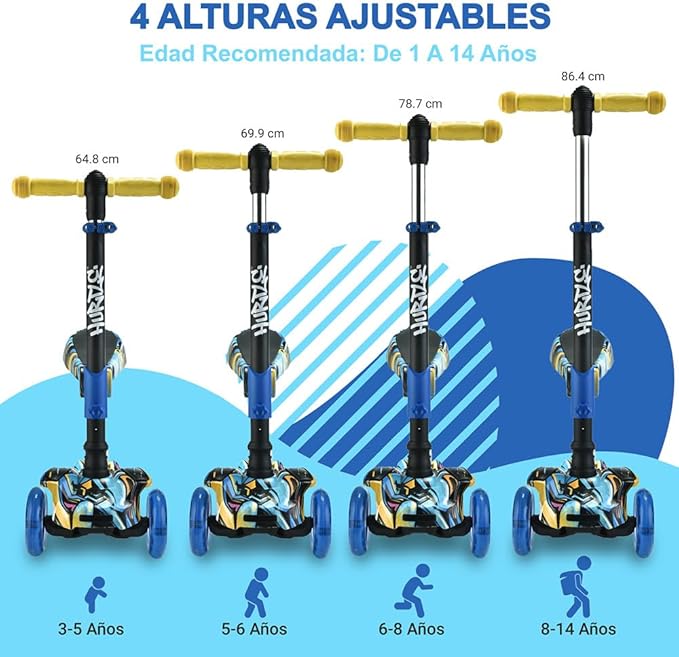 • ADJUSTABLE EASY-GRIP HANDLEBAR - The handle height offers 3 adjustments. The lean-to-steer technology lets leaning, instead of turning, to control the ride, for better balance and coordination.