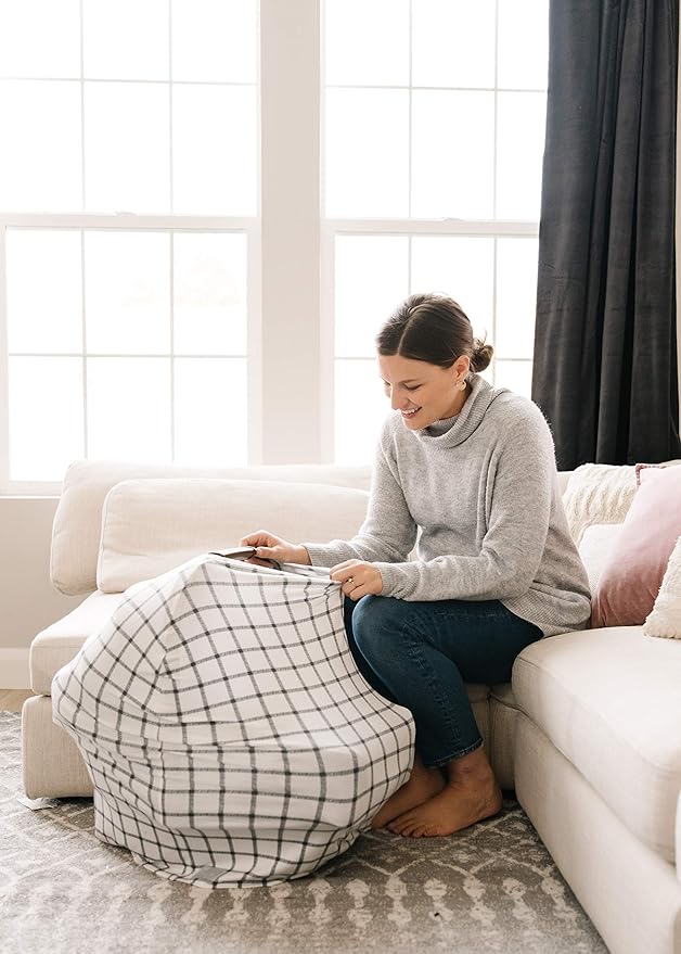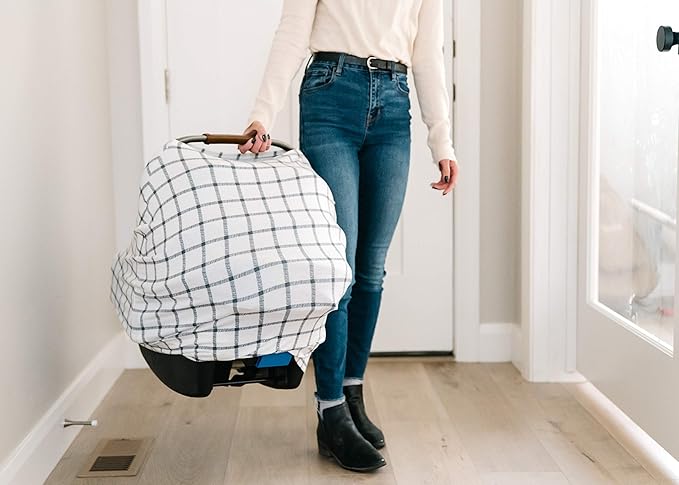• 5-in-1 Cover. Baby Car Seat Cover. Nursing Cover. Shopping Cart Cover. High Chair Cover. Infinity Scarf. Stretchy fabric fits most car seats, shopping carts, and nursing mothers Navy Blue Stripe