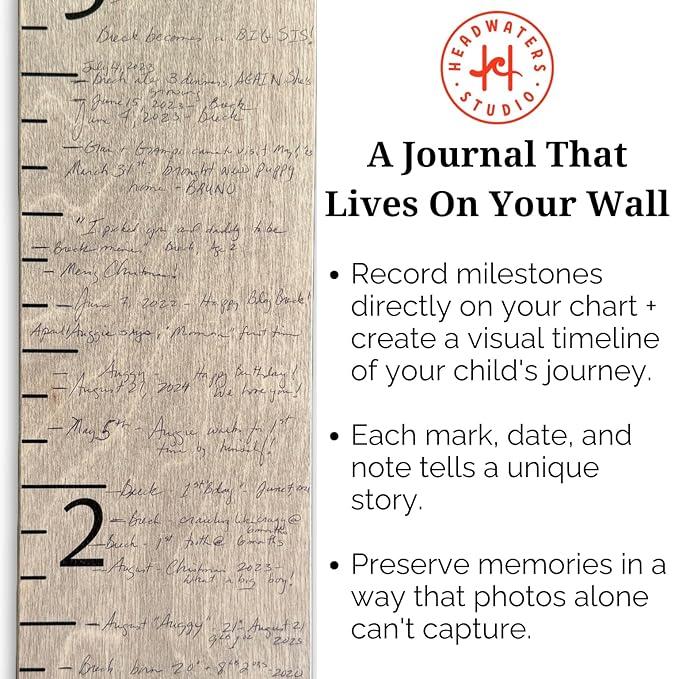 • PROUDLY MADE IN THE USA: Choose quality, durability, and support American craftsmanship with our wooden ruler growth chart. Made in the USA with care and precision, this wooden height chart for kids and wall height chart for adults is crafted to accompany your family through all its growth spurts and milestones. By choosing our height chart for wall, you're not just getting a product; you're investing in a piece of art that holds memories and supports local craftsmanship.