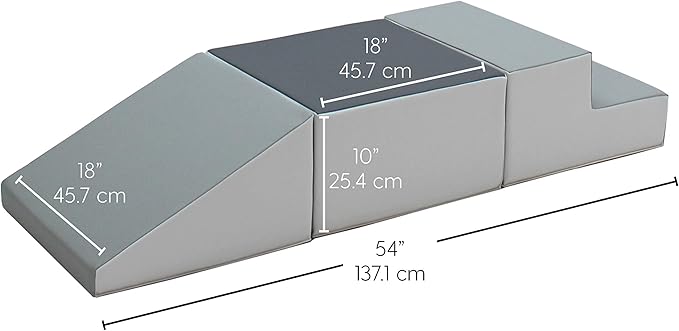 • PRODUCT SPECIFICATIONS: recommended for kids 10 months to 3 years, adult supervision required; assembled climber measures 54" L x 18" W x 10" H; light assembly required
