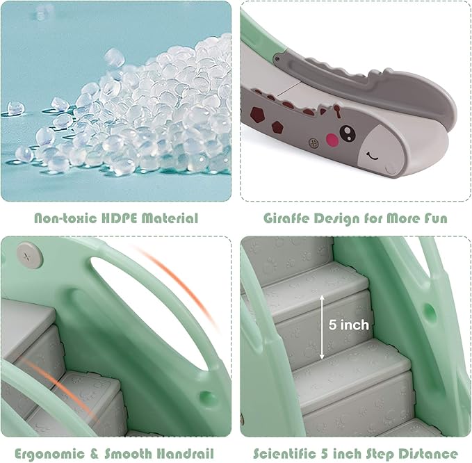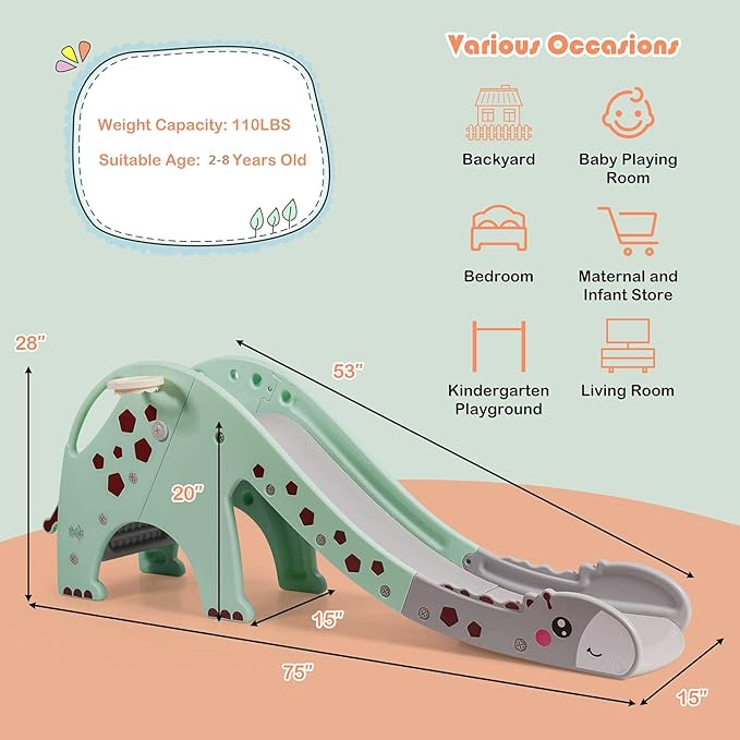 • 【Premium Material & Stable Construction】 Made of odorless HPDE material, this toddler slide set with ASTM and CPSIA certification is safe and durable to use. Meanwhile, the smooth surface protects your kids' tender skin. Besides, the wide base & triangle stable structure make sure the strong load-bearing capacity allow the kids to play without worry.