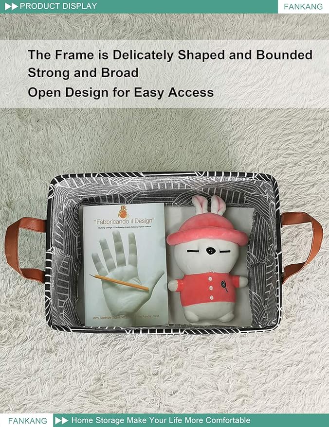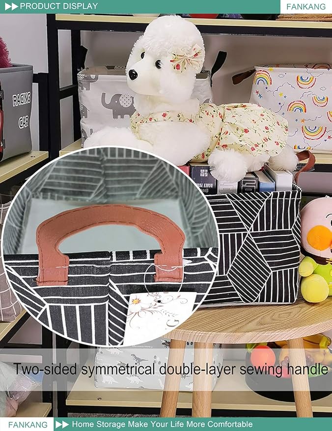 FANKANG Storage Basket,Nursery Hamper Canvas Laundry Basket Foldable with Waterproof PE Coating Storage, Office, Bedroom, Clothes,Toys (Rec-Black Cube)
