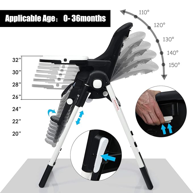 • 【MULTI-FUNCTIONAL HIGHCHAIR】Humanized design provides more choices for mom .With 7 positions of heights, the highchair can match different heights of the tables and sofas. The 5 position backrest provides the most comfortable space with your baby grows. With our highchair, you just have a versatile baby highchair to meet your many needs. By pressing buttons on either side, the seat can be easily removed and converted into a booster. INFANS high chair is suitable for children aged 0-36 months.