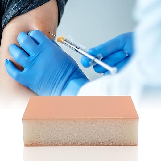• The reusable injection training pad can be used to practice subcutaneous injections and Intramuscular injections. Injection syringe in the picture is not included.