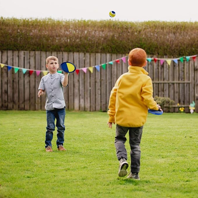 • 【Softer and High-quality Ball Set】The old version's tennis balls were very hard and lacked elasticity, making them difficult for kids to catch. Our balls are much stronger and softer, yet still have great stickiness, so kids can easily catch them and enjoy a comfortable feel. Kids won't lose their fun because they can keep catching the ball. This ball game is always lots of fun for little ones, even at family reunions.
