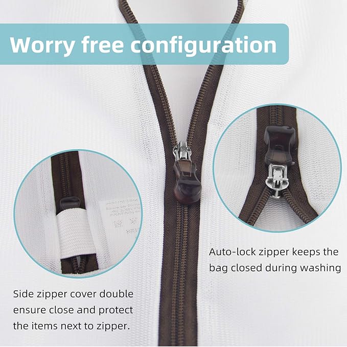 • Upgrade anti-rust zipper with auto lock feature and side small zipper cover will keep the bag closed when washing and drying. Enjoy quiet and a snag-free laundry experience. Don’t forget to tuck the zipper under the cover when doing laundry