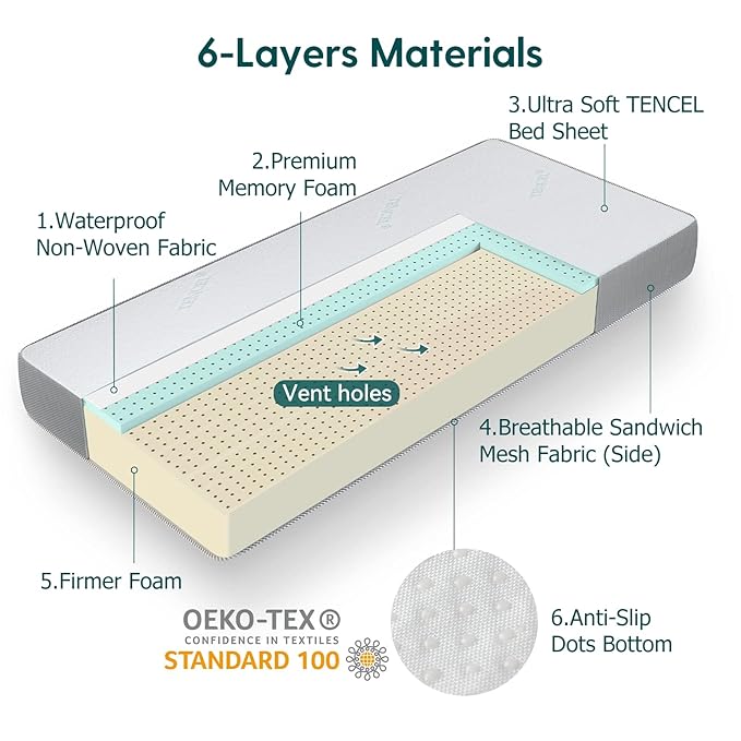 • 【DUAL-SIDED SLEEP MATTRESS】 Baby’s good sleep is closely related to a comfortable mattress. In order to better accompany baby’s growth, our toddler mattress adopts a double-sided sleep design. Age range: 0-8 years