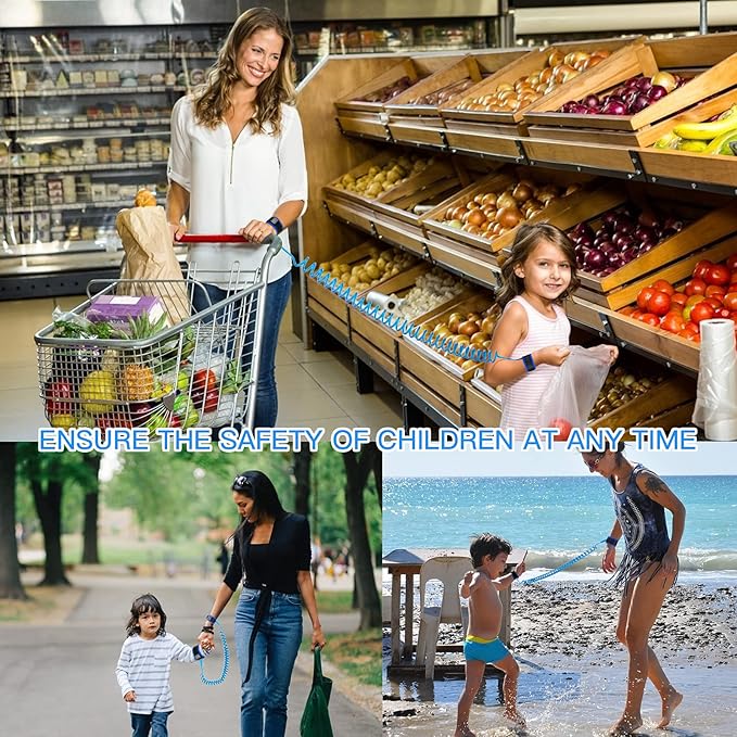 • 【Wide Application】Anti-lost supervision way in supermarkets, parks, shopping malls, Theme parks, grocery, airports, and any other crowded place. The velcro is pretty strong and you can be connected to backpacks and baby carriages.