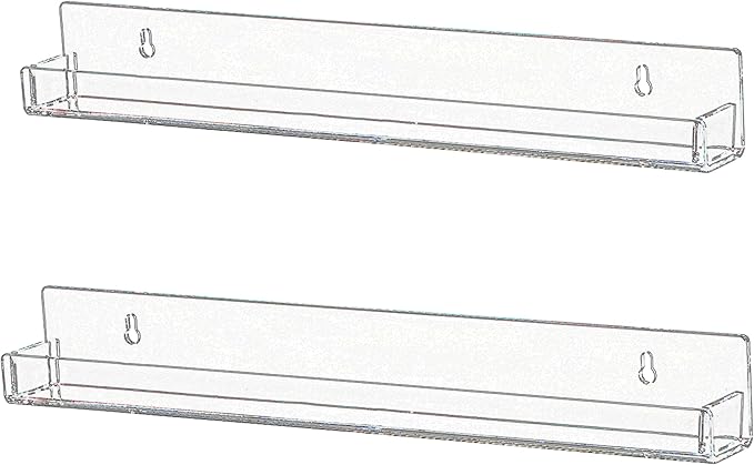 • SIZE:15x1.6x2(LxWxH)inch/each,5mm thickness.The inner diameter of the acrylic shelf is 1.25"(Please confirm that the bottle diameter is not greater than 1.25" before purchase)package include 2 pieces of acrylic wall book shelf and install hardware,if use it as nail polish organizer,holds up to 30 bottles of nail polish (actual number may vary based on size and shape of bottles),each wall floating shelf is individual,It can be installed in a row or separately according to your preference.