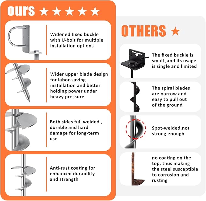 • High Quality:Our ground stakes are made of high quality steel with chorome plate coating to help prolong the life of the trampoline stakes, these shed anchor kits are built to last, ensuring long-lasting performance and reliability.