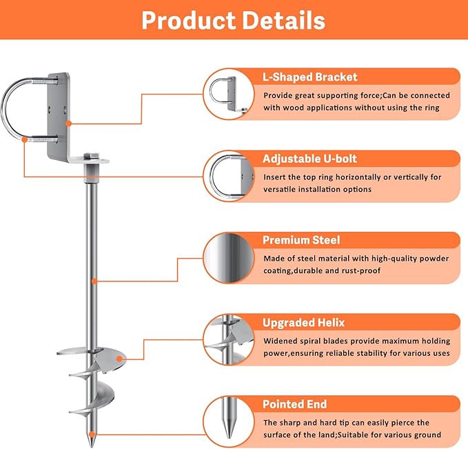 • Adjustable L-shaped head: The trampoline anchors' adjustable L-shaped head with a wide helix provides enhanced stability and prevents movement, even in challenging weather conditions.